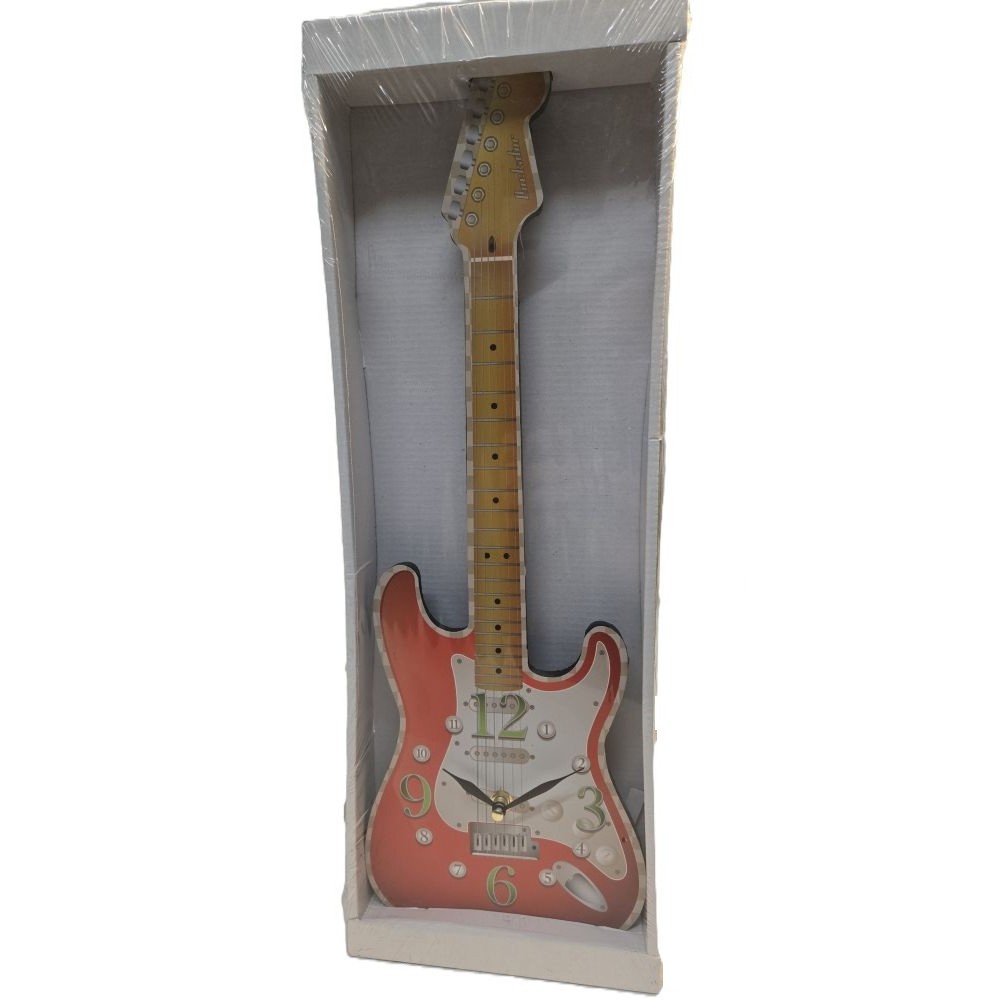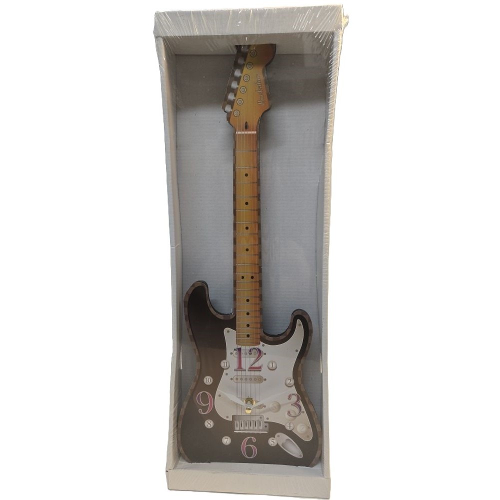 Die Uhr ist in Form einer klassischen E-Gitarre gestaltet und kombiniert funktionales Design mit stylischer Dekoration.