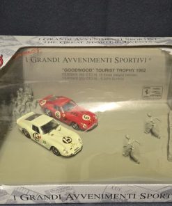 Dieses originale Modell aus der italienischen Sammlermarke Bang zeigt eine detailreiche Szene des historischen Motorsportevents Goodwood Tourist Trophy 1962. Im Mittelpunkt stehen zwei legendäre Ferrari 250 GTO Rennwagen – eines der ikonischsten Fahrzeuge der Motorsportgeschichte.