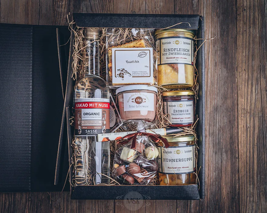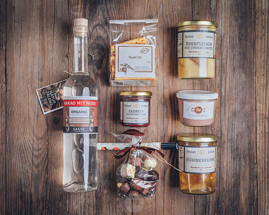 Ein großes westfälisches Präsent mit regionalen Spezialitäten und selbstgemachten Produkten.